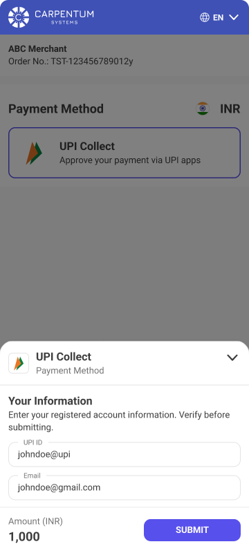 Description - UPI Collect is a method of fund transfers in India. This payment method allows users to simply authorize payments through their registered UPI app after receiving a payment collection request.